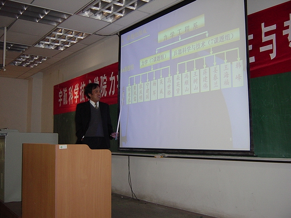 2007年11月10日上午宇航科学技术学院力学工程系“弹药工程与爆炸技术”和“工程力学”两个本科专业的2007级新生(共67人)与专业导师座谈会在中关村校区3号楼隆重举行。学院院长黄风雷教授、分党委书记刘淑艳教授、副院长唐胜景教授和董兆波副院长、徐更光院士和力学工程系全体专业导师参加了座谈会。会上,力学工程系系主任张庆明教授介绍了力学工程系的基本情况;学院领导分别致辞和讲话;徐更光院士通过自己在本专业学习的亲身经历、近五十年的教学科研经验和取得的学术成果,勉励新生勤奋学习,给学生留下了深刻印象。座谈会由系常务副主任魏雪霞教授主持。会后学生与专业导师进行零距离座谈。