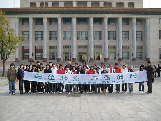 随后我们以“奥运北京,志愿我行”的活动主题先后参观并深入了解了天安门,北京大剧院,人民大会堂并留下了我们国贸二班志愿者的身影。让人难以忘怀的一瞬!
