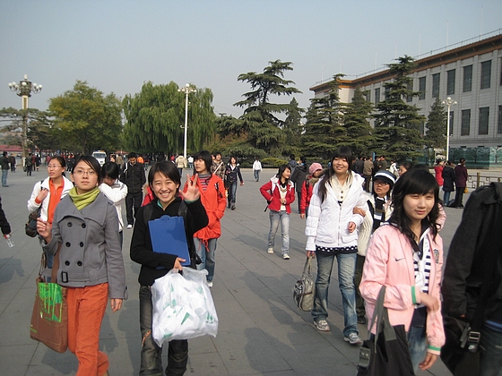 下车后,我们大步迈向活动沙龙------天安门广场,一个集体有组织有纪律的向前进发。