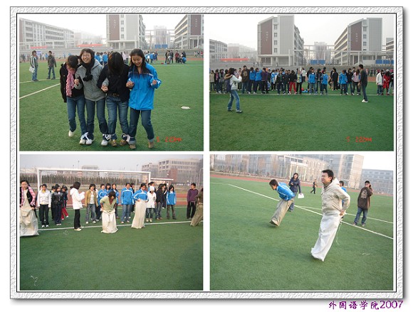 12月5日下午,良乡校区篮球场和田径场活跃着一群年轻的人,外国语学院2007级宿舍向心力大赛在这里开始。此次活动是外国语学院2007级宿舍文化节的系列活动之一,年级90余名学生以宿舍为单位,为了宿舍的团结和荣誉,展开了激烈而欢乐的竞赛。