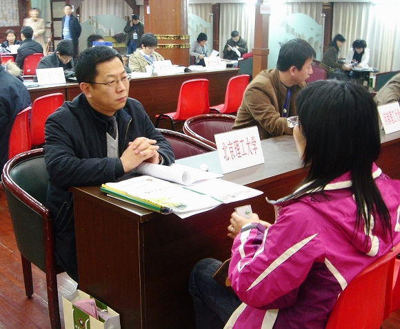 郝志强处长向用人单位代表介绍我校毕业生情况