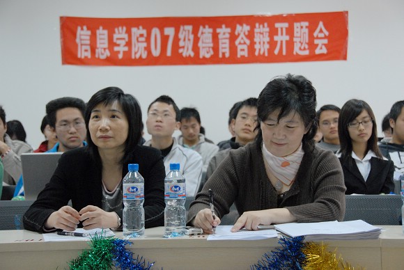 3月22日上午九点,信息科学技术学院2007级电子工程系信息工程二班的“德育答辩论文开题会”在良乡校区理科教学楼209教室召开。