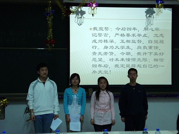 由班长做最后的开题,回忆了大家一学期共同努力,相互温暖的生活,最后带领全班同学一起宣誓,同学们慷慨激昂,场面十分温暖。