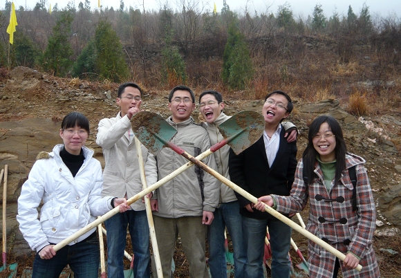 当天上午9:00全体成员顺利到达目的地,并在中门寺生态园区外合影留念。这次活动是机械与车辆工程学院研究生为庆祝奥运圣火点燃所举行的系列活动之一,又时值全国义务植树27周年,更是激发了同学们植树的积极性。