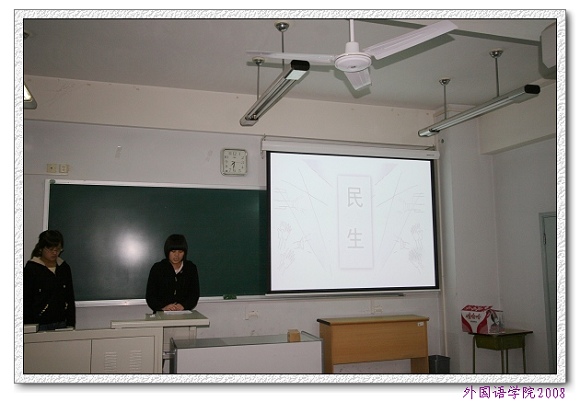 05级德语系曹舒悦和陈佳丽同学以《众志成城抗冰雪》为题深情讲述了抗雪救灾过程中发生的感人至深的故事,用一幅幅鲜活的图片再现了受灾情况和救灾情况,生动体现了我党“情为民所系,权为民所用,利为民所谋”的全心全意为人民服务的精神,展现了救灾过程中共产党员身先士卒的精神风貌。她们指出,青年党员应努力学习,全面提高自身综合素质,积极为国家和人民做贡献,做人民的公仆。