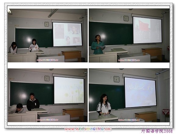 06级日语系曾丹同学以《讲社会道德,做文明大学生》为题发表了自己对“艳照门”事件的看法。她指出,“艳照门”事件是对我国传统伦理道德的挑战。她另辟蹊径,从文化传播角度分析了“艳照门”事件折射出的社会问题。她批评了某些网站为达到盈利目的而不惜污染社会环境的现状以及部分网民不注意自身道德修养而利用网络散布不健康文化的行为,结合十七大报告中关于建设和谐文化的内容号召大家从我做起,树立正确的世界观、人生观、价值观,提高自身判断力和自制力,抵制不健康文化的影响。06级德语系于冬冰同学以《蚍蜉撼树》为题向我们诠释了“人间自有真情在,社会更有正义在”的不变真理。她用图片向在场观众展示了西藏3•14事件的情况,猛烈抨击了达赖集团企图分裂祖国的恶劣行径,并通过视频形式揭露了西方媒体肆意歪曲事实、诋毁丑化中国的行为。她回顾了西藏自建国以来取得的成绩,结合十七大报告中关于处理民族关系、加强民族团结的内容,高度赞扬了党在处理民族问题、宗教问题上的方针政策,指出达赖的分裂行为不得人心,势必失败。她认为,学外语不是为了崇洋媚外,而应通过对外国文化的学习,“取其精华,弃其糟粕”,达到振兴中华的目的。她的演讲慷慨激昂,赢得了在场观众热烈的掌声。针对2008年台湾“大选”,05级日语系张刚同学从“浅谈马英九当选意义”的角度发表了自己对本届“大选”的看法。他主要分析了国民党赢得“大选”的原因,通过对马英九及台湾大学生对“大选”态度的介绍,指出和平统一是两岸关系发展的必然趋势,“台独”违背一个中国原则, 不得人心,必遭失败。05级英语二班郭阳、胡赛男同学以《北京奥运,百年梦圆》为题从奥运志愿者角度发表了感想。她们回顾了班级、学院组织的以奥运为主题的活动,结合十七大精神和自身志愿服务经历号召全体同学行动起来,为即将到来的2008年北京奥运贡献自己的力量。她们精心制作了视频短片,通过采访奥运志愿者特别是作为奥运志愿者的党员同志的方式,展现了我校奥运志愿者积极向上的精神风貌,带领在场观众走近奥运,走近奥运志愿者。