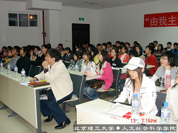 2008年4月13日07级人文学院学习部“由我主讲”学生系列讲座在良乡理科教学楼108隆重拉开了帷幕。此系列讲座是完全由学生主办学生主讲的活动,内容丰富形式新颖,为同学们提供交流学习和展示自己的平台。