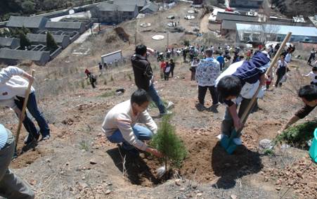 2008年4月13日,化工与环境学院青年志愿者协会积极响应“绿色奥运”的号召,组织同学们到北京金山岭长城脚下进行义务植树活动,为北京奥运的绿化做出自己的贡献。