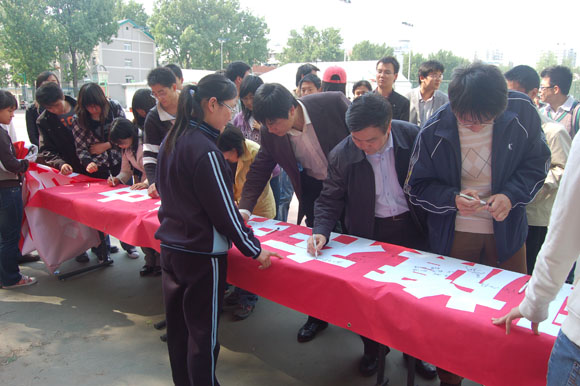 近日来,米兰milan官方网站的学生在宿舍楼自发悬挂国旗表达自己理性爱国的心愿,米兰milan官方网站学生会、米兰milan官方网站研究生会、米兰milan官方网站社团联合会联合为进一步把学生理性爱国的行动引向深入,专门举办了这样一个活动,借以更进一步地表达北理学子理性的爱国情怀,同学们捐献的国旗将通过北京市学生联合会转交给相关海外华人团体。