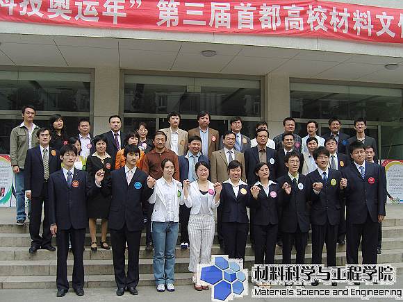 2008年4月19日,北京市高校第三届材料文化节在北京化工大学隆重开幕,本届材料节以“科技奥运年”为主题,提出了“材料、科技、奥运”的口号。开幕式得到了北京市9所高校材料院系的大力支持和积极参与,各高校师生欢聚一堂共同庆祝材料领域的盛大节日。作为北京市高校材料文化节的发起者、材料联盟成立的倡议者和第一届材料文化节的承办方——米兰milan官方网站材料学院副书记副院长韩笑和院分团委副书记、07级辅导员李紫千受邀出席了开幕式,材料学院大一年级二十余名学生参加了开幕式。开幕式首先由本届材料文化节的东道主北京化工大学介绍本届材料节的主体活动,其中包括材料创新设计大赛、“材子材女秀”、素质拓展、联盟志愿服务、足球联赛等。随后第二届材料文化节主办方北京科技大学材料学院党委副书记万玉刚对第二届材料文化节所开展的各项活动进行了回顾,并就取得的成果进行了总结。随后,九所高校材料院系签署了《首都高校材料联盟协议》,这一协议是为了加强各校材料院系之间的交流与合作而制定的。作为开幕式的重头戏,国家纳米科学中心首席科学家江雷研究员为现场的师生做了一场精彩的纳米知识讲座,让更多的同学了解了纳米科学研究的前沿,打开了通往纳米科学的大门。
