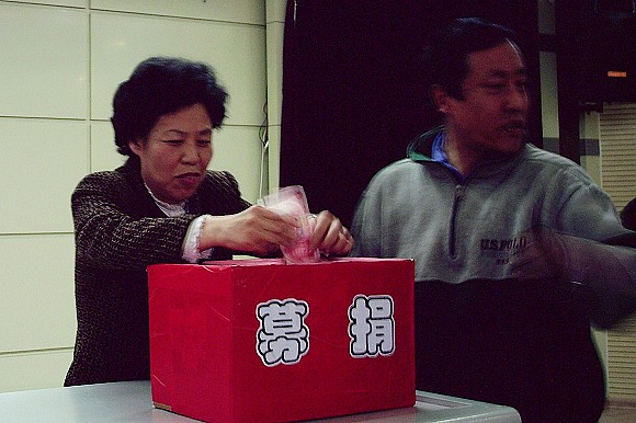 在募捐中,我校清真食堂从事膳食工作的一位五十多岁的女职工张春瑜师傅,含着热泪说:地震将夺去多少人的生命,多少孩子将成为孤儿,我心酸痛……,当场捐出200元;74高龄的我校后勤人员程婉斌老师,也拿出自己的积攒200元,以表心意;我校老教师程兆雄教授也捐出400元。