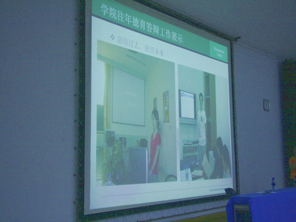 紧接着,胡晓艳老师为毕业生们展示了02级两位学长的德育答辩材料。两份材料制作精美,内容深刻,对母校情真意切,对自己总结到位,深深地打动了在场的所有同学。胡老师还强调了德育答辩中一些细节问题和要求,并公布了相应的时间安排。