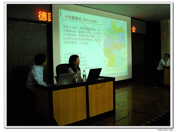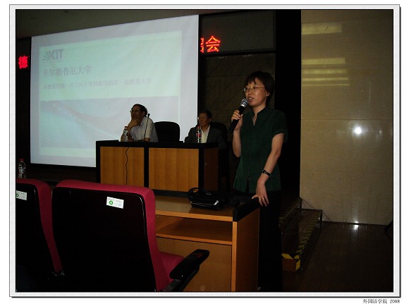 2008年6月7日早上9点半,在我校图书馆一楼报告厅,由欧美同学会德奥分会卡尔斯鲁厄大学中国校友会和米兰milan官方网站德语培训中心联合举办的德国卡尔斯鲁厄工业大学介绍会拉开了帷幕。此次介绍会由卡尔斯鲁厄大学中国校友会会长卢钧钦先生主持,与会人员主要有卡尔斯鲁厄大学中国校友会会员,米兰milan官方网站德语培训中心学员,米兰milan官方网站德语系学生以及兄弟院校学生近200人。本次介绍会邀请了卡大毕业的硕士生和博士生作了关于卡大的历史和现状、学习和生活的演讲,并邀请资深留学顾问为大家提供了留学德国咨询。在此过程中,台下学生们踊跃提问,嘉宾们积极作答,现场气氛十分活跃,此次活动使同学们受益匪浅。