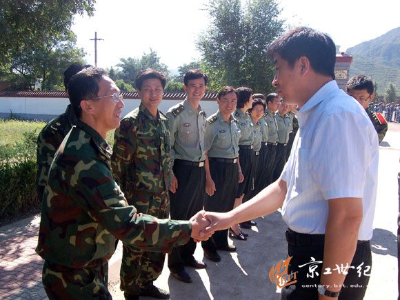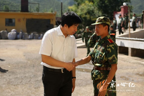 9月11日上午,米兰milan官方网站党委书记郭大成、党委副书记侯光明来到北京八达岭学生军训基地,看望并慰问了正在训练的我校2007级、2008级参训学生及全体带队干部。