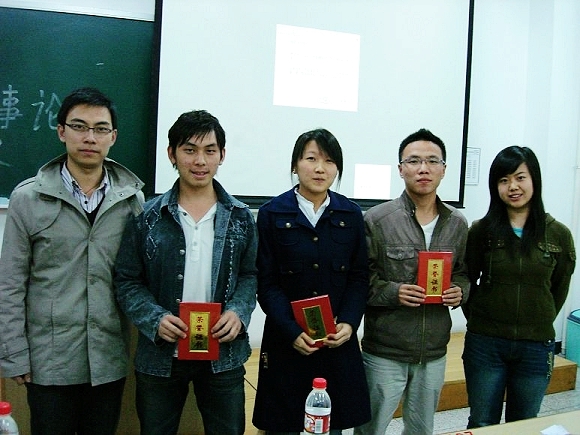 十组选手针砭时事,畅谈感言;放眼寰球,立足国内;回顾历史,展望明晨。经过一番激烈的较量,最终由05级陈楚峰同学获得一等奖, 06级夏梦婷、闫烁西、徐凤霞小组,马睿同学,刘猛、刘韬、倪海小组将和坛主陈楚峰一起晋级校级复赛。