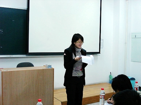 暗黑的PPT背景,沉重的语调,“城管打人”的严肃主题,06级加依娜同学给我们带来了不一样的思考。针对城管打人问题,她首先以一个具体的案例引出主题,随后她简单地介绍了现在城管执法的现状,虽城管执法较以前已有极大的改进,但现存的问题依然引起了加依娜同学的高度关注。分析了这些问题产生的原因之后,她还从法学专业的角度提出了自己的见解以及可能的解决办法。