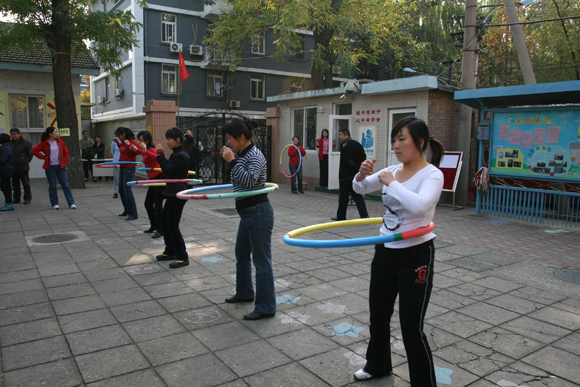 在“摇呼拉圈”比赛时,你能否找到艺术体操的身姿;