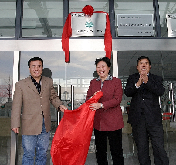 教育部社会科学司魏小波处长、中国教育电视台吕学武副台长与我校副校长李和章共同为“太阳花在线”影院揭牌。