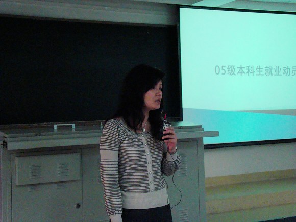 首先,阎艳老师从全国就业环境、北京高校就业状况等方面分析了当前的就业形势,结合学院具体专业,分析了今年签约的具体情况,并与去年的就业情况作了对比。针对今年的严峻形势,阎艳老师鼓励大家以积极的心态正视所面临的形势,建议大家确定适当的择业目标,改变“一步到位,选定终身”的观念,树立“先就业后择业”的新型就业观念。鼓励大家在寒假期间,跟家里人多沟通,协助大家更好的就业。