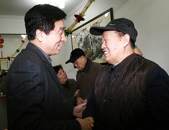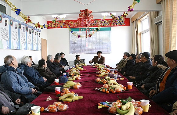 党委书记郭大成首先代表学校党政祝老同志新春快乐、身体健康!他回顾了学校2008年的工作情况,并就学校在2009年的工作设想向老同志做了简要介绍。会议在热烈的气氛中进行,与会的离休老干部发言积极、言语诚恳、热情洋溢,言谈话语中充分反映出对党和祖国的热爱、对学校发展建设的关心之情,并从学习实践科学发展观的高度,对我校的和谐发展建设提出了一些宝贵的建议和意见。