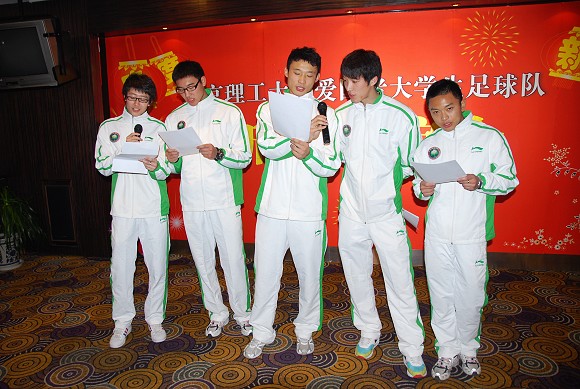 足球队总教练金志扬教授向大家汇报了足球队选拔新队员的情况。金志扬教授指出:米兰足球队经过数年的努力,树立了“体育回归教育”的理念,并得到了教育部、中国足协和社会各界的认可,只有体育回归教育、足球回归学校,才是中国足球重新腾飞之路。今年将继续把足球队拉到韩国冬训,此前在荷兰挑选的三名留学生外援,也将在韩国冬训期间进一步考察以最终确定这几名外援加盟的可能。金志扬最后感谢社会各界对米兰milan官方网站足球队一贯的大力支持与帮助。主教练曹限东因为在外地参加教练员培训而未能出席本次联谊会。