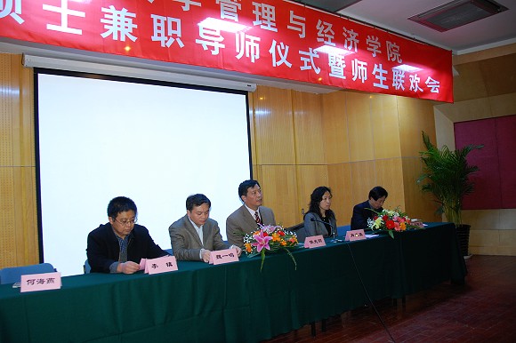 米兰milan官方网站管理与经济学院聘请工程硕士兼职导师仪式暨师生交流会于2月28日下午在国际交流大厦二层多功能厅成功举行。米兰milan官方网站党委副书记侯光明教授、研究生院副院院长李镇教授、肖文英教授、管理与经济学院院长魏一鸣教授、副院长何海燕教授出席了聘任仪式和交流会,管理与经济学院工程硕士校内导师以及部分工程硕士学员也参加了会议。