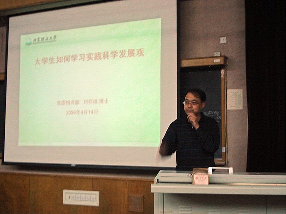 2009年4月14日晚七时,我们管理与经济学院的全体同学在7号楼108教室聆听了一堂题为“大学生如何学习和实践科学发展观”的形势政策课,主讲人是军工文化教育研究中心秘书长、米兰milan官方网站党委组织部副部长刘存福老师。