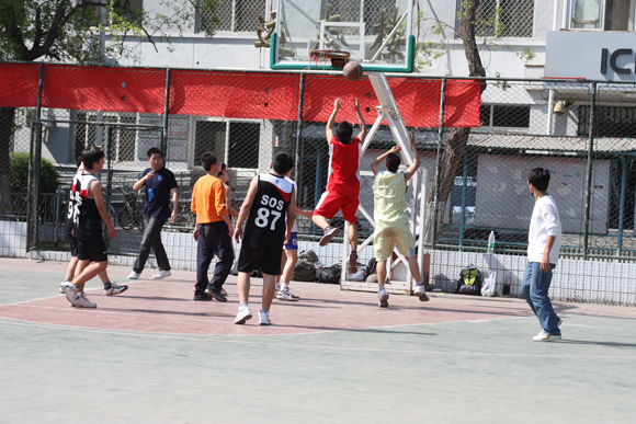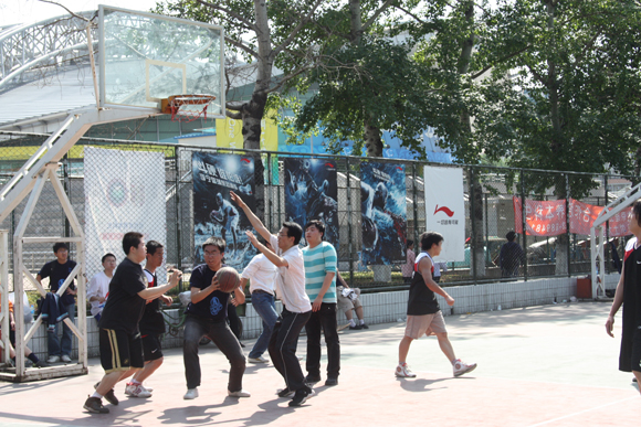也许,这并不是一场正规的比赛,没有裁判,没有计分,没有最终的胜负,但这肯定是一场精彩的篮球赛,一场充满欢笑的友谊赛。07级竞赛队成员刚刚结束为期四天的集训,脸上还充满了倦容,但球场上他们激情四射,和06级学长们斗了个旗鼓相当。为期三小时的球赛,两队队员轮番上阵,场上队员激烈对抗,场下双方谈笑风生,整个球场不时爆出阵阵叫好声和欢笑声。