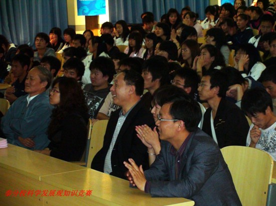5月16日晚,分校团委举办了以“深入学习实践科学发展观”为主题的知识竞赛。李刚书记、康明副书记、团委书记张立文老师、各班辅导员和老师共200余名师生观看了此次竞赛。