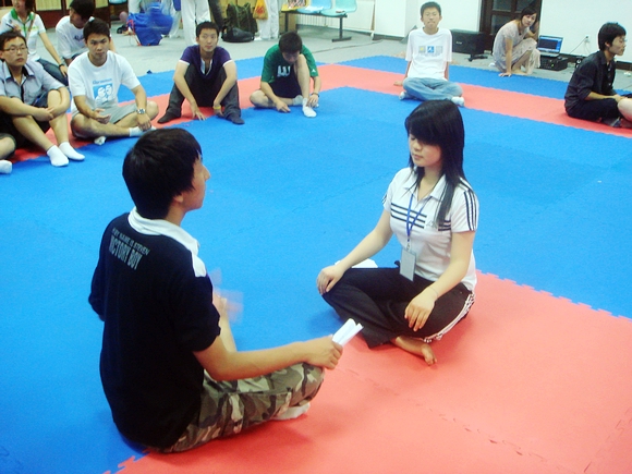 舞蹈疗法是一种包含着深刻心理学原理的团体活动,活动本身运用了如引导,鼓励,冥想,接触性安慰,释放等方法帮助活动参与者缓解压力,达到身心和谐的状态。整个活动长达两个小时,包括游戏,乐曲欣赏,双人互动,分享等环节,既有蒙眼过障碍这样有趣的游戏环节,又有小组分享这样的心灵启迪活动。整个活动的各个环节或静或动,看似随意而为,实则是经过精心设计,完全符合人的心理状态变化特点。而从现场气氛来看,社会工作专业的同学也获得了活动参与者很高的评价。
