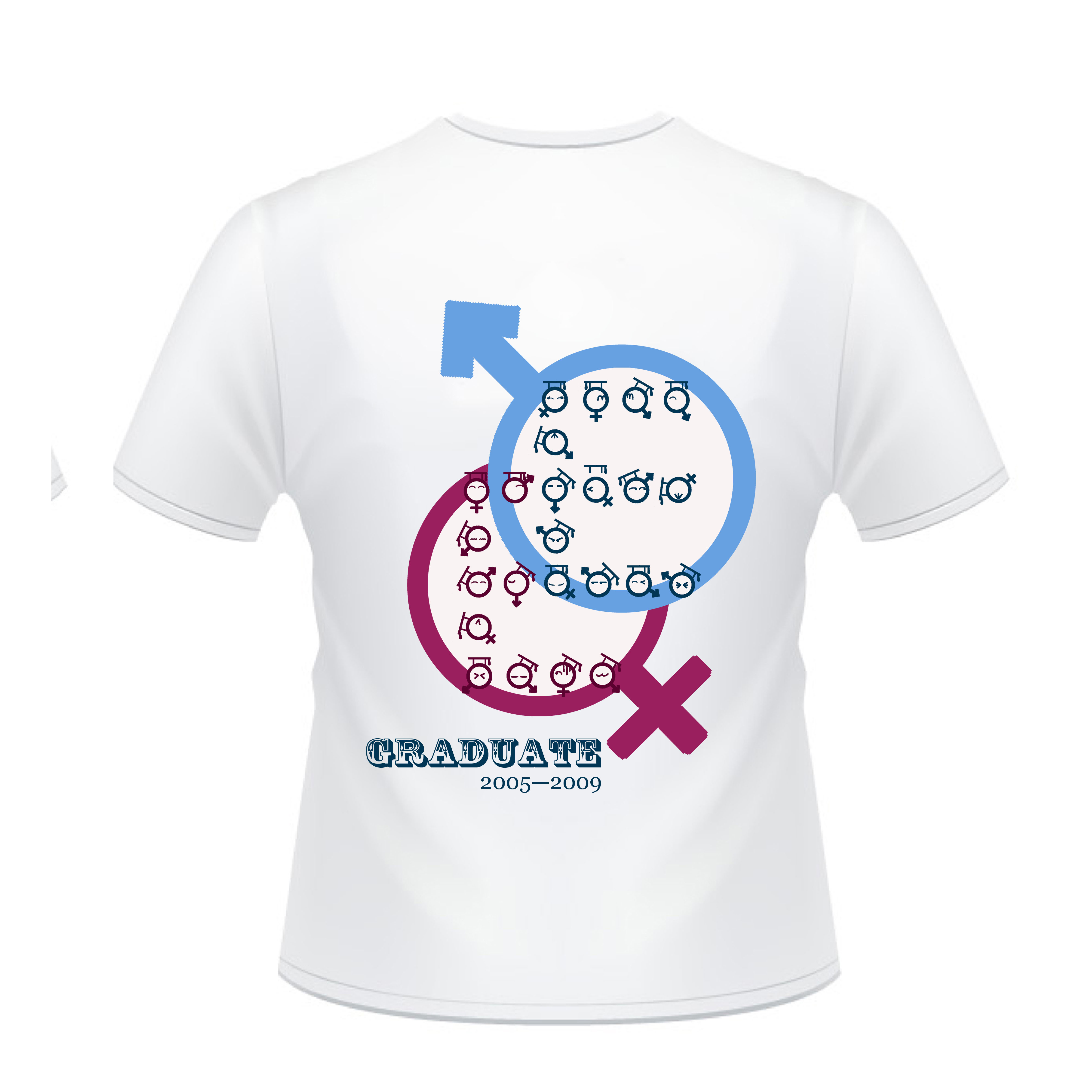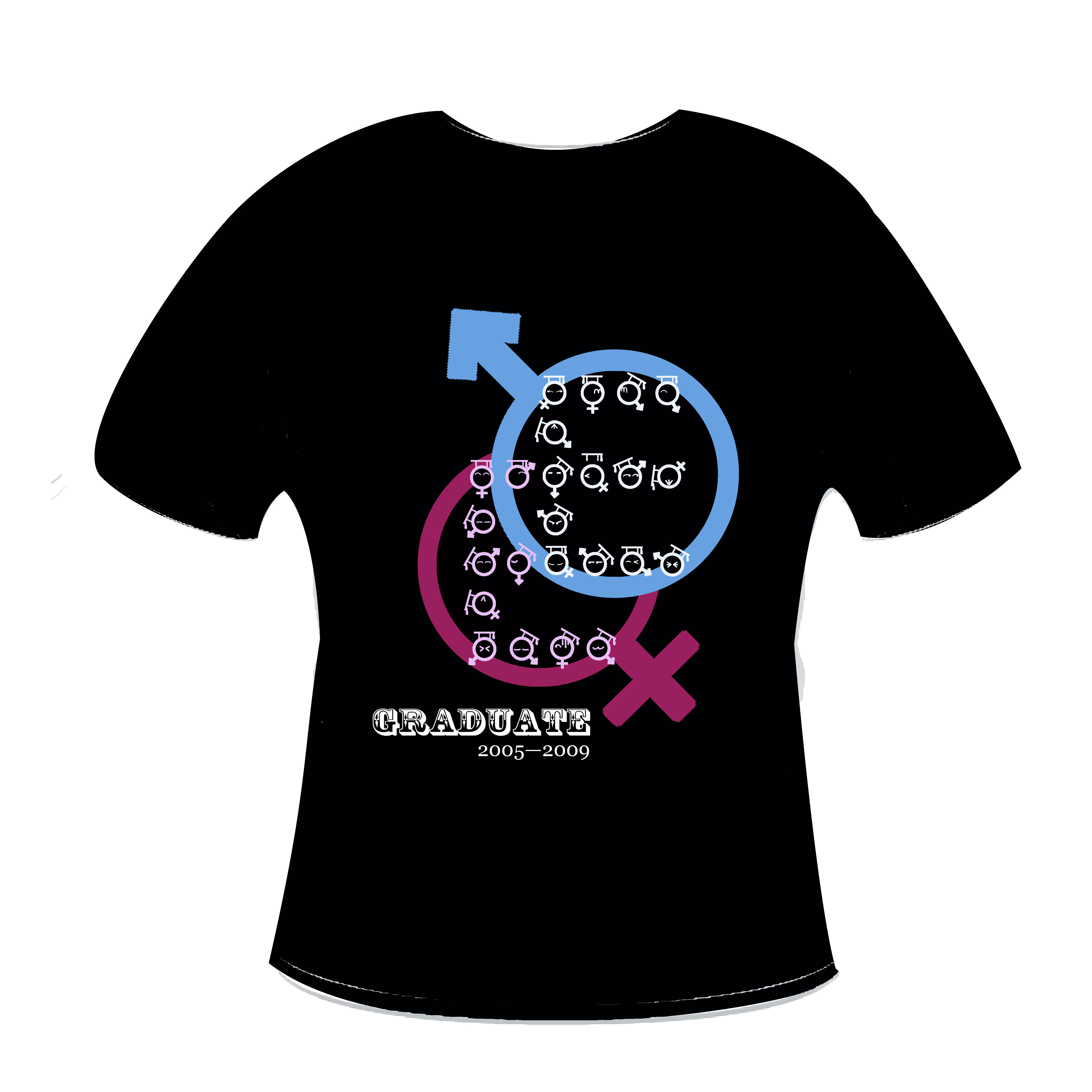 毕业文化衫的主体图案是两个重叠的字母“E”,象征着信息与电子学院。图案由一系列不同表情的、带着学士帽的头像组成,形象可爱。两个表示性别的符号更彰显出青春的活力,简洁大方,动感十足。毕业文化衫的设计充分考虑了同学们的不同喜好,选择了黑、白两种颜色,白色凸显活力,黑色体现沉稳。黑白两种颜色的搭配在整体上代表了信息与电子学院蓬勃向上的精神风貌。
