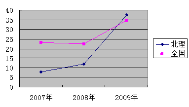 图为2007年-2009年司法考试米兰milan官方网站法学院与全国通过率数据比较
