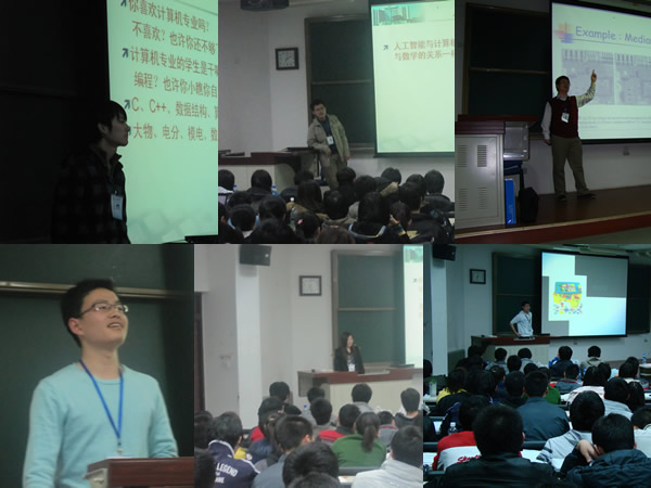作为本次大会的特约嘉宾,2006级优秀学长杨蛟龙和2004级优秀学长林健也就自己参加竞赛的经历、大学的生活等方面与同学们做了交流。杨蛟龙跟同学们切身交流了他的学习历程,指出个人知识能力和团队相互协作的重要性,是取得成功必不可少的条件;林健学长提出要找到适合自己的兴趣乃至确立自己的研究方向,并为之努力奋斗等,令在场听众受益匪浅。