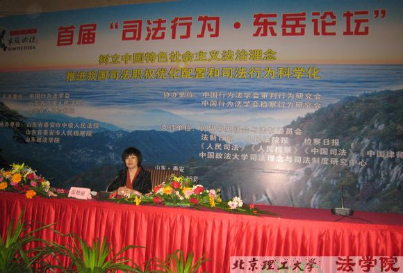 5月15至16日,中国行为法学会、山东省高级人民法院、山东省人民检察院共同主办,泰安市中级人民法院、泰安市人民检察院共同承办了“司法行为.东岳论坛”。全国各级人民法院、人民检察院、司法部、各大专院校等300多名著名法律专家和学者参加了此次盛会。中国行为法学会会长刘家琛、全国政协社会与法制委员会主任、司法部原部长张福森、最高人民法院副院长江必新、北京师范大学教授高铭暄、中国政法大学教授陈光中、何秉松、杨荣馨教授等,就会议有关专题做了演讲。米兰milan官方网站法学院副院长张艳丽教授应大会邀请参加了此次论坛,并作了主题发言。