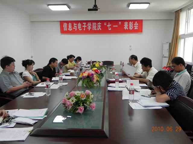 6月29日,信息与电子学院举行了庆“七一”总结表彰会。出席会议的有学校组织部副部长刘存福、宣传部副部长李跃华、学院分党委书记张笈、副书记党华、全体教工党支部书记和学生党支部书记代表。会议由张笈主持。
