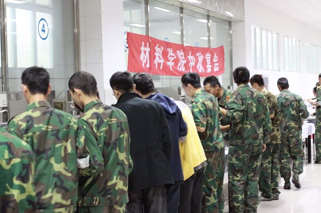 宴会期间,学生们即兴表演了自编自演的节目,将宴会推向高潮。各班也借此机会,邀请学院领导及班主任进行入学以来第一次集体合影留念。学生们纷纷表示感谢材料学院这个大家庭,并决心用完美的军训汇报表演为母校70岁生日献礼!