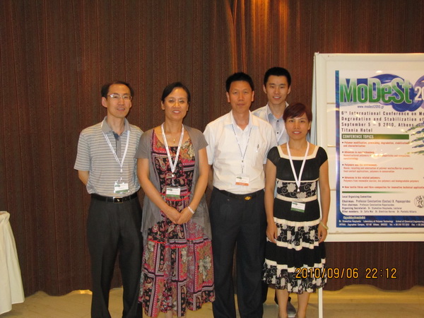 2010年9月6日至9日由国际“聚合物改性降解与稳定学会(MoDeSt Society)”主办的第6届聚合物改性、降解与稳定性(MoDeSt)国际会议在希腊首都雅典举行。我校材料学院杨荣杰教授带领3名教师及一名博士研究生等一行5人参加了本次会议。杨荣杰教授是本次会议顾问委员会成员及分会场主席,作了题为“Effect of sepiolite on combustion and thermal behaviours of intumescent flame-retardant polypropylene(海泡石对膨胀阻燃聚丙烯燃烧及热降解行为的影响)”的学术报告,取得了良好的效果。