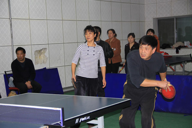 参赛队员们各显风采,上旋球、侧上旋球、下旋球、侧下旋球、搓球、拉球、扣球、切球,大家全力以赴、互不相让,选手们使出浑身解数,一个个漂亮发球动作总能引起观众助威呐喊,一个个精湛的扣杀技术博得现场的所有人的连连鼓掌、阵阵喝彩,活动室里充满了因为运动而散发出来的热情,比赛过程高潮迭起,生机勃勃!