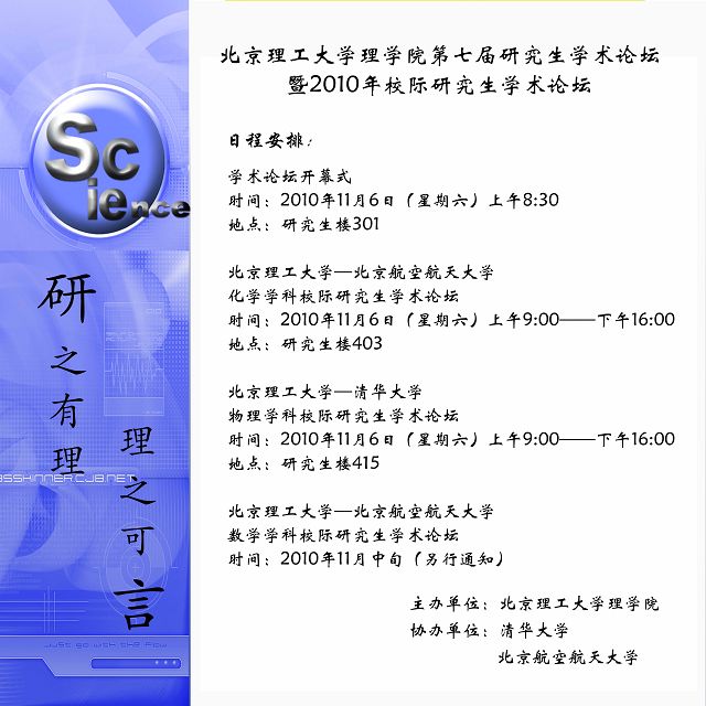 附:米兰milan官方网站理学院第七届研究生学术论坛暨2010年校际研究生学术论坛日程安排