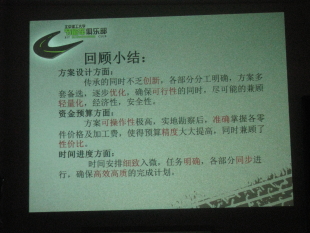 报告会持续了3个小时,四支队伍准备充分,精彩的PPT展示和详细的分析讲解让各位评审眼前一亮,惊喜连连。每支队伍的讲解展示均从动力、车架转向及传动三个方面进行,无论是方案的专业技术还是实现方法,创新点突出,理论分析明确,并且可行性高。