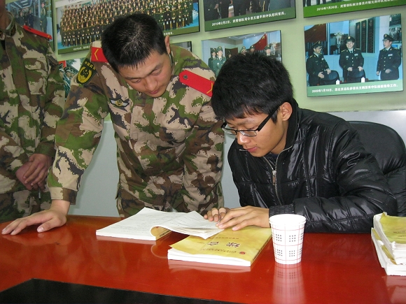党员们都把帮助国旗护卫队士兵提高文化知识看成是一种义不容辞的责任,党员们都本着 “认真、耐心、细致、精确”的思想投入到此次活动中,活动定为每周末派两名党员前往为其进行学习辅导。