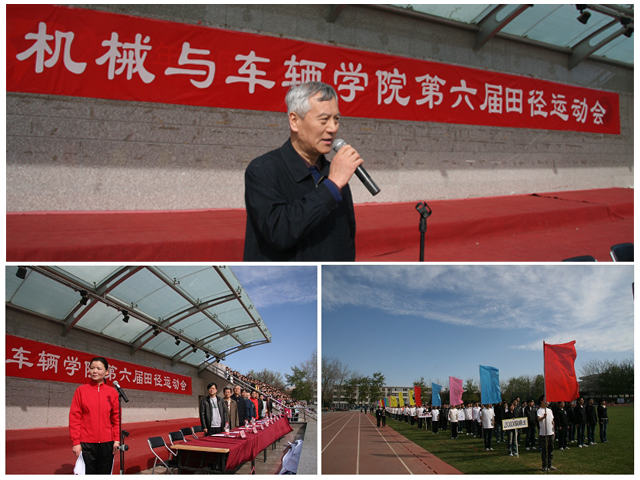 年4月10日,机械与车辆学院第六届田径运动会在中关村校区运动场举行。全体学院领导、学院教代会和工会代表、各系(部、中心)教职员工及各年级学生出席了开幕式。开幕式由学院副书记、副院长阎艳主持。