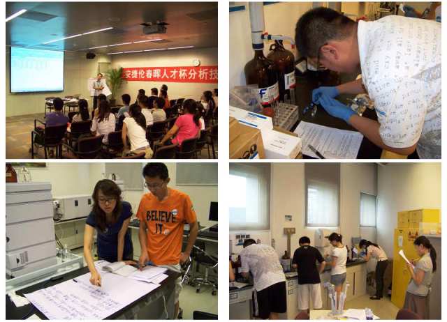本次 “安捷伦春晖人才杯分析技术挑战赛” 是生命学院与安捷伦公司、安捷伦科技大学进一步加强校企合作的最新成果,比赛以分析测试技术为主要内容,以培养研究生、本科生分析测试实践能力、方案设计和团队合作为主要目的,分为初赛与决赛两个阶段,经过5月29日的初赛主要围绕分析测试竞赛的理论知识进行了开放式的网络测试,6月19日的决赛主要考验各参赛队伍的分析测试实践能力和团队协作能力。本次挑战赛立足分析测试技术与社会的密切关系,以“食品安全从餐桌开始”为主题,并且为了丰富参赛队员的层次,每支参赛队由3名同学组成,包括本科生,研究生,博士生,共有来自生命学院的六支代表队参加了比赛。