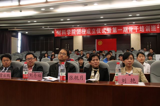 4月8日上午9点,材料学院青年团校成立仪式暨第一期骨干培训班开班讲座在研究生楼101举行。学校办公室副主任刘存福、材料学院副书记副院长张舰月、材料学院团委书记刘艳、团委副书记常云鹏以及骨干培训班学员参加此次活动。