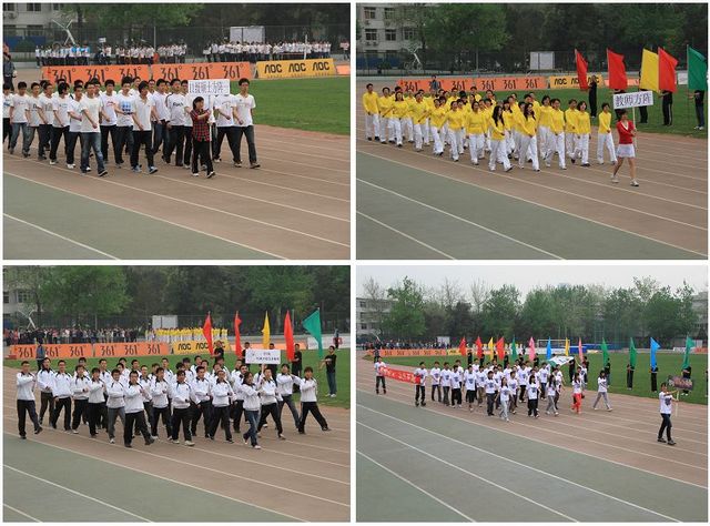 上午八点半,随着激昂的《运动员交响曲》响起,在国旗方阵,彩旗方阵的带领下,由博士生、硕士生、本科生组成的共计15个运动员方阵以及教师方阵整齐有序地步入运动场,整齐划一的步伐彰显着理工学子严肃稳重的风范;迎风招展的彩旗绽放着三院骄子青春豪迈的激情!运动员入场完毕,举行了庄严的升旗仪式。
