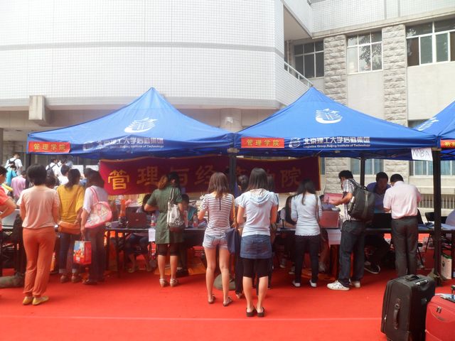 管理与经济学院迎新接待处聚集了来自五湖四海的同学们,老师及志愿者们全身心的投入迎新工作中,学籍注册、缴费、分配宿舍、领取材料等报道各项工作都有条不稳的进行。