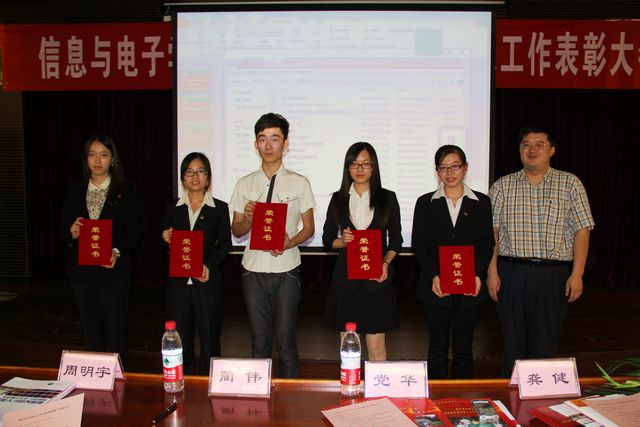 为营造创新文化氛围,搭建实践交流平台,全面提高团员青年的创新精神与实践能力,对在创新与实践工作领域涌现出的先进集体和个人进行表彰,9月26日,信息与电子学院召开2012年创新实践工作表彰大会。校团委书记蔺伟、副书记周明宇,方正国际技术管理部总监龚健,信息与电子学院党委副书记、副院长党华,学院团委全体青年教师及本科2010级、研究生2012级团员代表参加会议。会议由学院团委韩融主持。