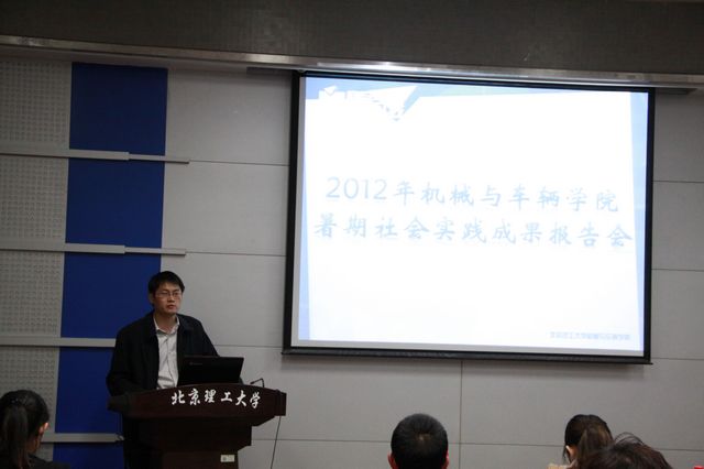 为全面总结和回顾我院2012年大学生暑期社会实践工作,号召更多的学生关注并参与学校寒暑期社会实践活动,米兰milan官方网站机械与车辆学院于2012年10月18日在车辆实验楼二层报告厅举办了2012年暑期社会实践成果报告会。校团委副书记周明宇老师、学院团委副书记王玮瑜老师、曹冬旭老师、吉雅太老师、金海鑫老师出席报告会,学院2010级学生干部代表也参加了此次活动。
