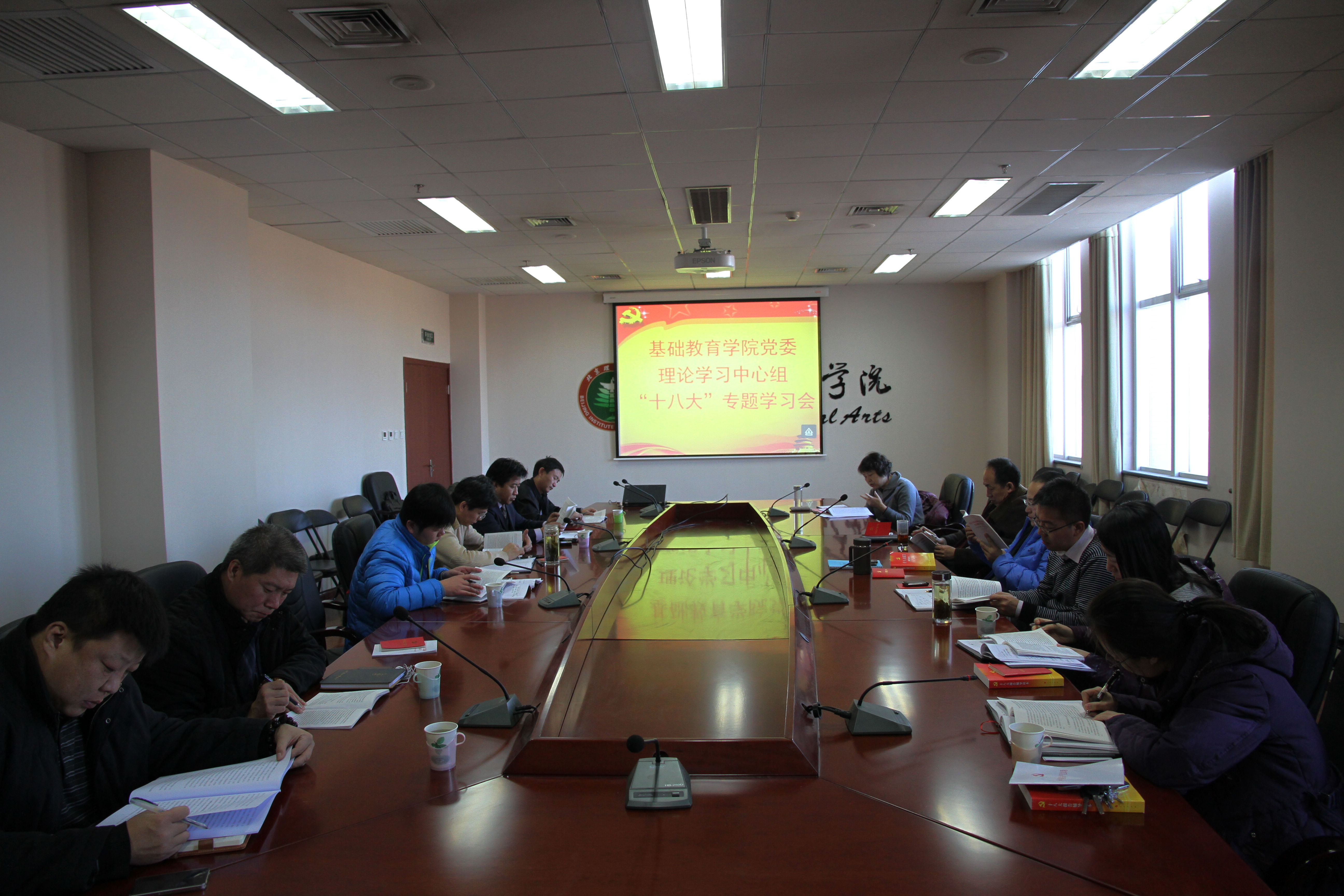 11月28日,基础教育学院党委理论学习中心组在学院会议室举办集体学习,结合胡锦涛总书记十八大报告单行本和新修订的《中国共产党章程》,畅谈对十八大会议精神的理解和体会。校长助理、良乡校区管委会主任姚利民,基础教育学院党委全体科级以上干部参加了学习。