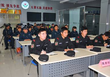 最后,关于校园安保工作的重要性及要求,王老师谈到:国内的经济发展、社会发展要依靠稳定的社会环境,安保工作是与十八大精神吻合的,虽然我们是基层单位的一名基层管理和服务人员,但也是社会稳定大局的一部分。作为校园安保队伍,我们要建立完整的治安体系,确保个人的财产安全、人身安全,确保社会的安定有序、和谐美好,做好本职工作,确保校园的安定和谐,这就是以实际行动落实十八大的精神。同时王老师也对保安员小伙子们提出了希望:希望保安人员把人民的安危时时刻刻的放在心中,做人民的安全卫士,做老百姓的贴心人。